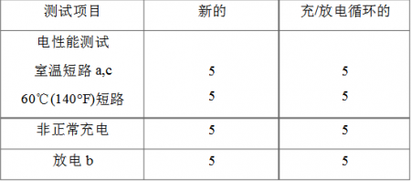 5.1.1技師更換型鋰電池應(yīng)當(dāng)按10-19節(jié)要求測(cè)試, 其中11B節(jié)(強(qiáng)制放電試驗(yàn))僅適用于電芯用于電池組的場(chǎng)合, 對(duì)多電芯安裝, 見5.3.1,按10節(jié)短路試驗(yàn)要求,不應(yīng)當(dāng)發(fā)生起火或爆炸,以及14A節(jié)沖擊試驗(yàn),15節(jié)微振試驗(yàn), 18B節(jié)熱循環(huán)試驗(yàn)或18C節(jié)高度摸擬試驗(yàn)不應(yīng)當(dāng)發(fā)生起火或爆炸。另 外在進(jìn)行短路試驗(yàn)時(shí),電芯或電池殼體溫度不應(yīng)超過(guò)150°C (302F)。